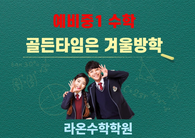 안녕하세요 라온수학입니다. 중학교라는 새로운 출발선에 서 계신 예비중 1 학생과 학부모님께 진심으로 축하와 응원의 인사를 드립니다. 중학교 입학을 준비하는 이 시기, 겨울방학은 단순한 쉬는 시간이 아니라 중학교 3년의 학습방향을 결정짓는 매우 중요한 골든타임입니다. 특히 수학은 중학교 학습 전반의 기초가 되는 핵심과목으로 이시기의 준비 정도에 따라 학습 자신감과 성취도가 크게 달라집니다. 초등 수학과 중등수학은 다릅니다. 중학교 수학은 계산산중심에서 벗어나 개념의 이해·논리적 사고· 문제 해석 능력을 요구합니다. 겨울방학은 유일한 선행·복습의 시간입니다. 입학을 한 후에는 학교진도와 수행평가 시험으로 여유있는....... <img src="https://blogthumb.pstatic.net/MjAyNTEyMTdfMTY3/MDAxNzY1OTgyMTgxMTQz.F-D03heziut2Kd4Ly0igtk63tGt3APcHauQae8vdmD4g.ltzdg2bq_zfxgRGMBaSO5mMLORXya30TohJB1ZQCgt0g.JPEG/%BF%B9%BA%F1%C1%DF1-001_%282%29.jpg?type=s3" />