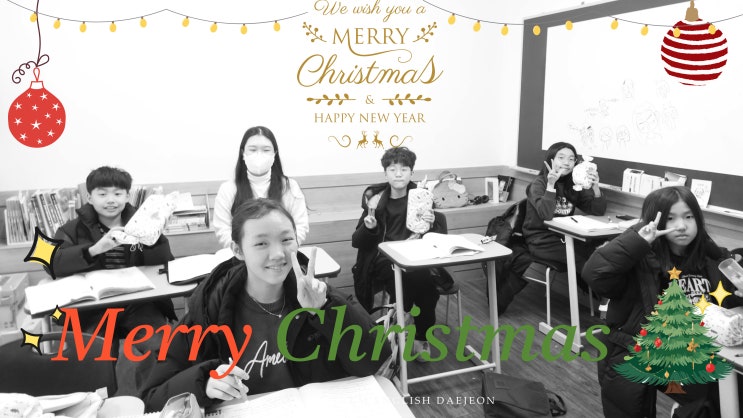 안녕하세요. 대전 반석동 영어 소수 맞춤 과외형 내신 수시 정시 전문 학원 CM ENGLISH 씨엠 잉글리시입니다. 작년 크리스마스 챙긴지 엊그제 같은데 벌써 1년이라는 시간이 지나갔어요. 매일 얼굴을 마주하고 수업을 할 때는 느끼지 못했는데 사진으로 보니 우리 아이들 많이 성장했네요. 언제나 우리 학생들 동심 잃지 않았으면 하는 마음이 한가득인데 2026년에는 또 어떤 유쾌한 에피소들을 선생님에게 재잘재잘 들려줄까요? 우리 학생들 이번에도 Merry Christmas♥ Merry Christmas ! <img src="https://blogthumb.pstatic.net/MjAyNTEyMjVfMzYg/MDAxNzY2NjQyNDI1MzM1.dawsde6ZLsExg5mkY0Y1LPFlG7ZP9NFdU9inqrt5TcAg.KOWkYTC-Y1w_EKLHveStk2mhH6konIhEvBdXwkUlyHog.JPEG/%C1%A6%B8%F1%C0%BB-%C0%D4%B7%C2%C7%D8%C1%D6%BC%BC%BF%E4_-001_%281%29.jpg?type=s3" />
