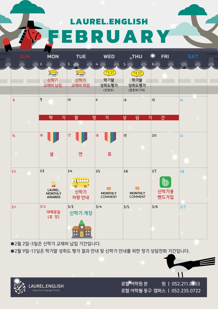 2월 일정 공지 _ 울산중구영어학원 로렐어학원 울산 중구 영어학원추천