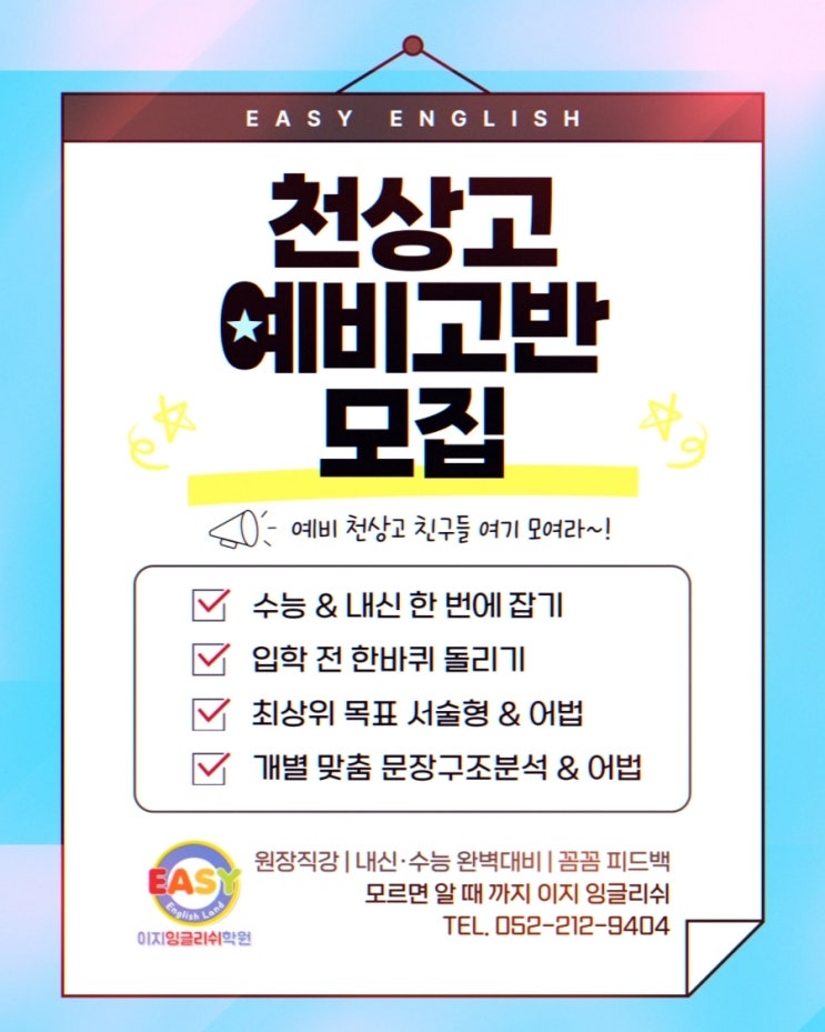 천상고 전문 이지잉글리쉬 예비고1 모집