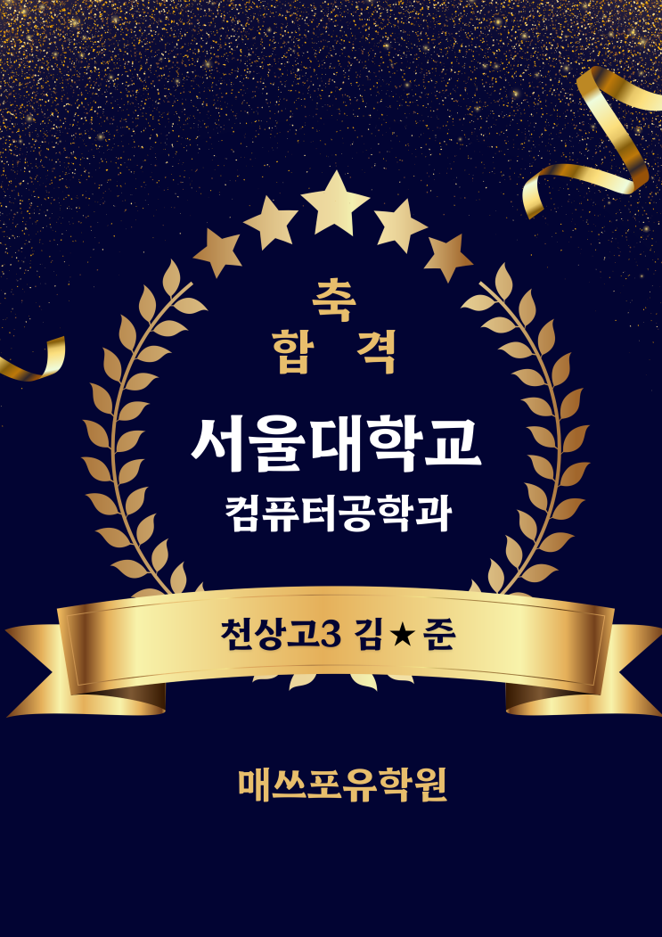 무거동수학학원 매쓰포유 천상고3 서울대 컴공학과 합격! 노력이 증명된 순간!