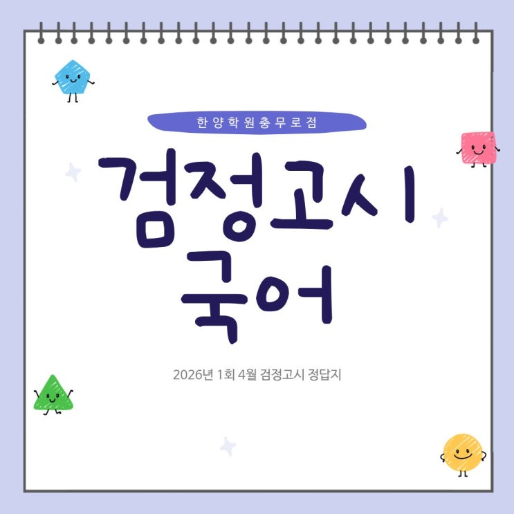안녕하세요 한양학원 충무로점입니다. 2026년 4월 검정고시 중졸 고졸 국어 가답안 공유드리겠습니다. 중졸 고졸 다음과목도 순차적으로 업데이트 될 예정입니다. 남은 과목도 화이팅! <img src="https://blogthumb.pstatic.net/MjAyNjA0MDNfMTEg/MDAxNzc1MTkyMTAyMjk3.Y9zYmq2QCeEDU2u0hn-d5eON6Q8SV-FaxK_atTvE4EYg.tagfpTvrJvQ6qxMTB-WzDyUwDlN9KYm4B_v7lnrbIZ8g.JPEG/1.jpg?type=s3" />