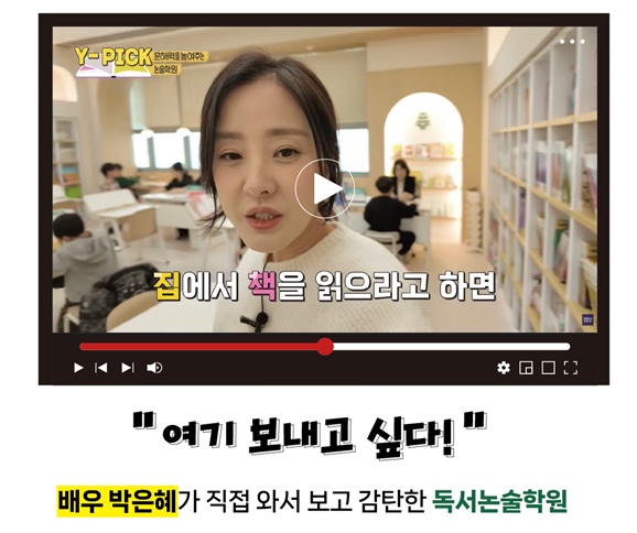안녕하세요! 책나무 다정점입니다. 방학이 끝나고 설레는 새 학기를 맞이하며, 우리 다정이들과 함께 책 속 세상을 탐험하느라 시간 가는 줄 모르고 지냈습니다. 아이들의 활기찬 모습에 저도 덩달아 에너지를 얻는 요즘이에요. ^^ 상담을 오시는 어머님들께 책나무의 체계적인 프로그램을 열심히 설명해 드리지만, 사실 책나무는 아이가 직접 경험했을 때 그 진가가 100% 드러나는 곳이라 늘 말로 다 표현 못 하는 아쉬움이 있었답니다. 그런데 제 마음을 읽기라도 한 듯! 반가운 소식이 전해졌어요. 최근 연합뉴스경제TV 'Y-PICK'에서 배우 박은혜 님이 직접 책나무를 방문해 프로그램을 체험하셨답니다! 박은혜 배우도 놀란 '책....... <img src="https://blogthumb.pstatic.net/MjAyNjAzMjNfNjIg/MDAxNzc0MjM4MTA0Nzcz.9918bLbnMIZwefrlYL0s9-03u5al6Tyudjv500BwARIg.YK_ySrT88pX_TcaLshE-prolV8eropklOu7JR2bDpwMg.JPEG/IMG%A3%DF5236.jpg?type=s3" />