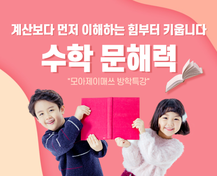 이번 겨울방학은 계산보다 먼저 이해하는 힘을 키워주세요! "문제를 끝까지 읽지 않아요." "무슨 말인지 몰라서 손도 못 대요." "설명해 주면 아는 것 같은데 혼자 풀면 틀려요." 이 고민, 수학 실력이 아니라 '수학 문해력'의 문제일 수 있습니다. 금곡동 초등수학 전문 모아제이매쓰에서는 이번 겨울방학 초등 저학년(1~3학년)을 위한 수학 문해력 특강을 진행합니다!! 수학 문해력 이란? 단순히 글을 읽는 능력이 아니라, 문제 상황을 이해하는 힘 필요한 정보를 골라내는 힘 조건을 연결해 생각으로 정리하는 힘 자신의 풀이를 말과 글로 표현하는 힘 이런 활동으로 진행해요 모아제이매쓰 수학 문....... <img src="https://blogthumb.pstatic.net/MjAyNTEyMTNfMjcx/MDAxNzY1NTk3MTIyODU0.yK5yIzuDGZX928Nu_gjTjBNUjBjIA93xF2pmgmD-29Yg.fOXS1-0-Qawo9pqQcUVbWCVUgAle0L1H2DT20aq-Psgg.PNG/%BD%BA%C5%A9%B8%B0%BC%A6_2025-12-13_123828.png?type=s3" />