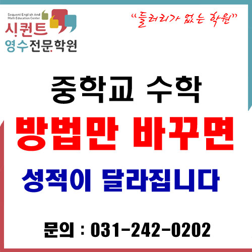 금곡동수학학원, 중학교수학 방법만 바꾸면 성적이 달라집니다.