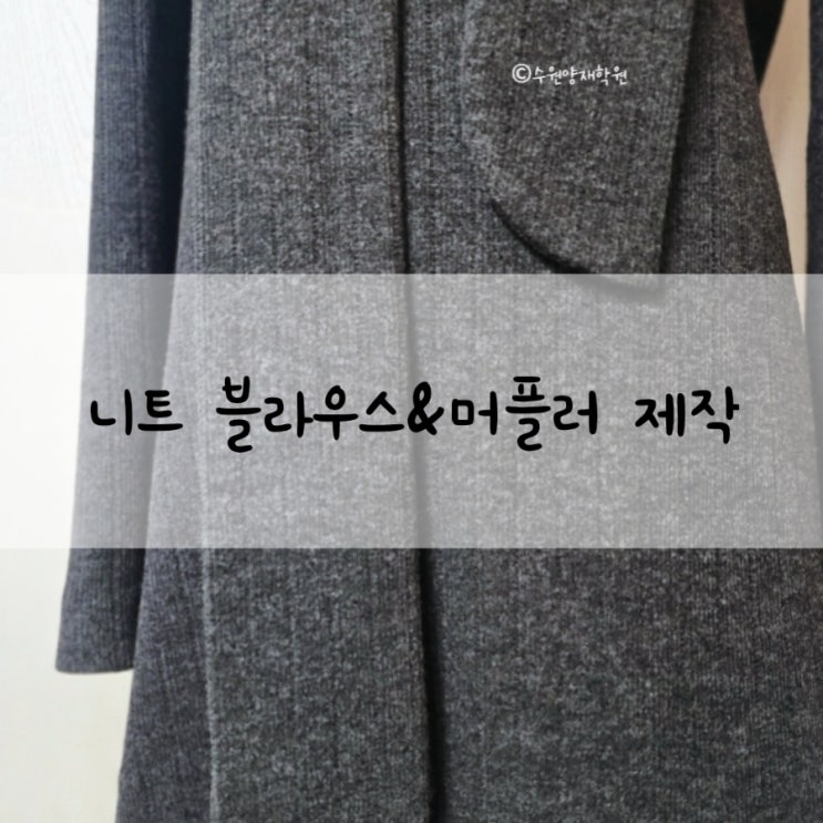 안녕하세요. 패션디자인학원을 찾으시나요? 수원에 위치한 패션의상 전문 교육 학원 수원 양재학원입니다. ☎ 문의- 031-257-6964 니트 블라우스 & 머플러 만들기 엉덩이를 덮는 기장, 허리라인이 살짝 들어간 실루엣, 라운드 네크라인의 니트 블라우스입니다. ◆ 의상 제작 과정 (중급-블라우스) 패턴 제도: 상의 기본 원형(앞, 뒤) 및 소매 기본 원형 설계 재단 공정: 마킹(Marking) 및 원단 마름질 봉제 및 도구: 미싱 사용법, 각종 부자재 및 도구 활용법 아이론 공정 소매 이즈(Ease) 잡은 후 다림질 및 몸판 연결 원단 부드럽고 신축성이 좋은 원단은 착용감이 뛰어나지만, 봉제 시 원단이 늘어나기 쉽습니다. 이를 방지하기 위해 원단....... <img src="https://blogthumb.pstatic.net/MjAyNjAyMDZfMjAy/MDAxNzcwMzc1NjA3NzMy.PaHZgD4XZ5V7imvGXglWxd7gB01EnYsez-Ym_mMjY0sg.hkfsi97lYXjhgRZmow0BDWrh7wJ2JK20VoQJr56DJ9Qg.JPEG/900%A3%DF20260206195949.jpg?type=s3" />