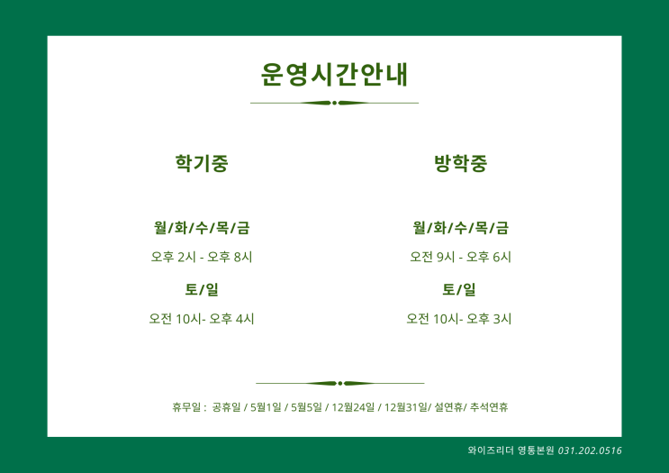 와이즈리더 영통본원 운영시간