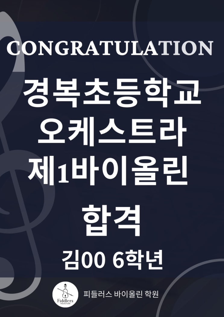 안녕하세요, 위례 바이올린 전문학원 피들러스 바이올린 학원입니다:) 경복초등학교 오케스트라에서 서드바이올린으로 활동중이던 6학년 재학생이 이번 자리 오디션을 통해 퍼스트바이올린으로 승급했습니다! 축하합니다❤️ 그간 수많은 사립초,국제학교,청소년 오케스트라 오디션 준비를 도와왔는데요, 우리 학생들이 항상 좋은 결과를 안겨주어 기쁩니다:) 사립초등학교 오케스트라 준비는 피들러스와 함께 하세요! <img src="https://blogthumb.pstatic.net/MjAyNjAxMjdfMjE3/MDAxNzY5NTExNDIzODcw.vK11_2w8UP9dfyeUwyLhsMFJY4Byh8j2Ze8HpdtPBPUg.e3lWxQefZgeb0Ti6udC4gOITJyllTCs9dWzu24J7LHEg.JPEG/IMG%A3%DF8589.JPG?type=s3" />