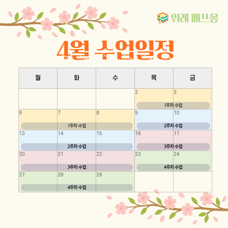 [매쓰몽수학학원 위례캠퍼스] 2026년 4월 수업일정