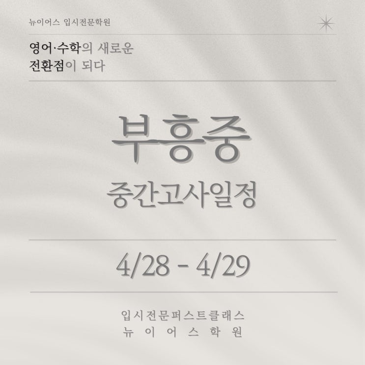 부흥중 중간고사 시험기간 [부흥중수학전문학원][부흥중영어전문학원]