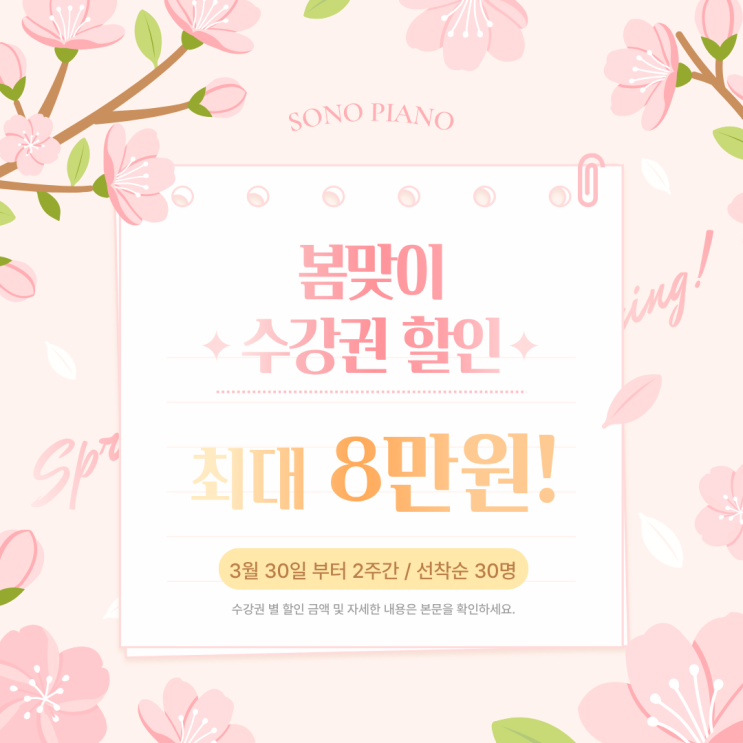 [소노 안내] 안양피아노학원 소노피아노 프로모션 안내 (최대 8만 원 할인 / 선착순 30명)