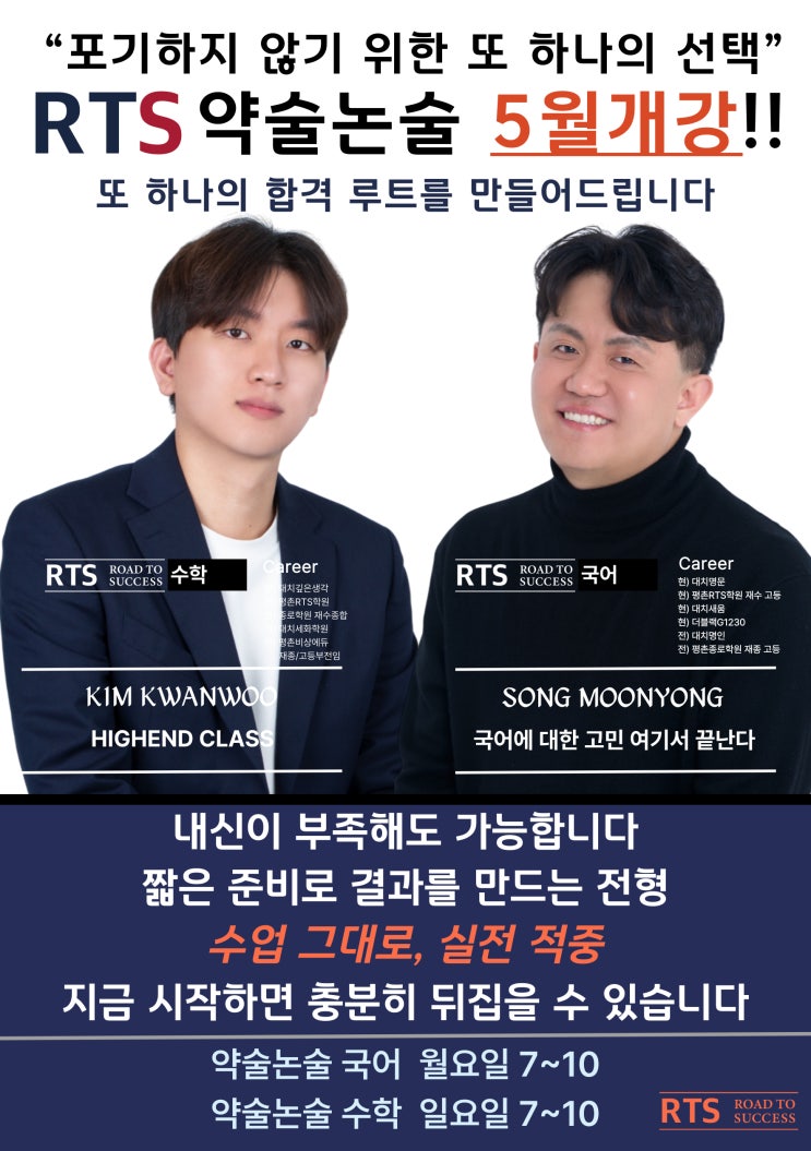 정시만으로 불안하다면, 아직 선택은 남아 있습니다 [평촌 RTS 약술논술 5월 개강]