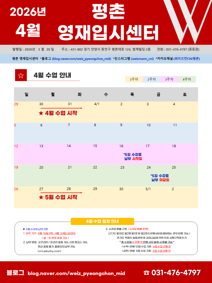 [와이즈만평촌영재입시] 4월 소식지 안내