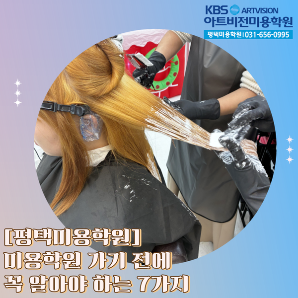 안녕하세요 평택 KBS아트비전 미용학원입니다!! 요즘 날도 많이 추워지고, 입시도 끝났죠 그러면서 아이들이 감기도 많이 걸려오더라구요 ㅠㅠ 이걸 보시는 분들도 감기 조심하세요~~ 미용을 배우고 싶지만 어떤 학원을 선택해야 할지 고민되는 분들이 정말 많아요... 특히 메이크업, 헤어, 피부, 네일 등 분야가 다양하다 보니 '기초부터 잘 배울 수 있는 곳이 맞는지', '자격증을 한 번에 취득할 수 있는지', '취업까지 연결되는지' 등이 중요한 기준이 됩니다. 오늘은 처음 미용학원을 알아보시는 분들을 위해 등록 전에 반드시 확인해야 하는 핵심 7가지를 정리해 드릴게요!! 이 글만 읽어도 학원 선택에 실패....... <img src="https://blogthumb.pstatic.net/MjAyNTEyMThfMTEy/MDAxNzY2MDM5NjkwMzg5.aWBMUtY8JNLQZU5xTI_6tptWAeuRdixkHSDRUs1ZpYQg.05NnJE8uiq4k-eeLQYUjpv9nfDFeqUGxJiWNQeAlDMgg.PNG/%C1%A6%B8%F1%C0%BB-%C0%D4%B7%C2%C7%D8%C1%D6%BC%BC%BF%E4_-001_%287%29.png?type=s3" />