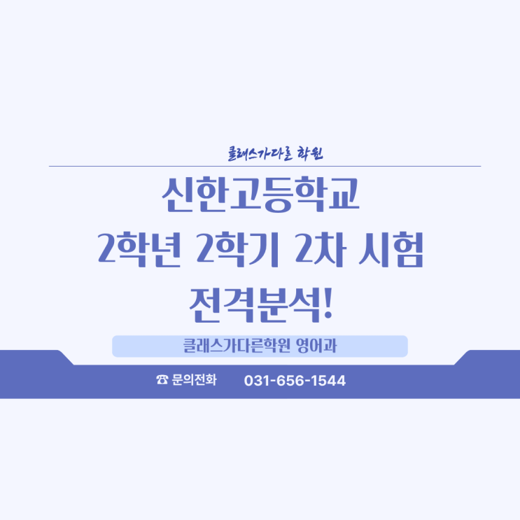 공부한 만큼 결과가 있는 학원! 클래스가다른학원입니다. 신한고등학교 2학년 2-2차 시험이 마무리됨에 따라, 신한고 1학년 시험 분석을 진행했습니다. 신한고 2학년은 시험범위 지문 내에서 84% 문제가 출제되고 수능형 외부지문에서 16% 출제되었기 때문에 시험범위 안의 전체 지문들을 꼼꼼하게 유형별로 대비하면서 수능 공부도 놓치지 않는 것이 필수입니다. 그런 면에서 신한고 2학년 2-2차 시험을 한 마디로 요약하자면, 수능유형으로 출제되는 객관식을 위한 유형별 지문분석과 서술형을 위한 어순배열 연습과 모의고사의 꾸준한 학습이 고득점의 비결 이라고 말하고 싶습니다. 문제 예측에 있어서 항상 높은 적중률을 보이는 클래스가다....... <img src="https://blogthumb.pstatic.net/MjAyNTEyMTlfMTA3/MDAxNzY2MTMxODUyMjI5.vaXkg1xX5yVOXsDCSLW2uVoxmall__NpoOV_droYmI4g.fu-XQfkTtuufXLjyUttonPFydThEvHseihGG2j6dM7Qg.PNG/%B0%F8%C5%EB_%BD%E6%B3%D7%C0%CF_%288%29.png?type=s3" />