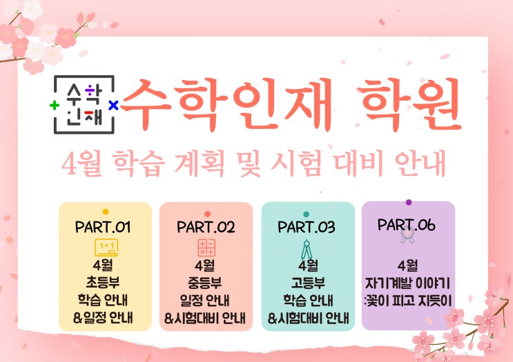 삼송수학인재 4월 학습 계획&주요 일정/중,고등부 내신 대비/4월이야기:꽃이 피고 지듯이/고양중,지축중,원흥중,삼송초,동산초,창릉초,고양동산고 수학 전문