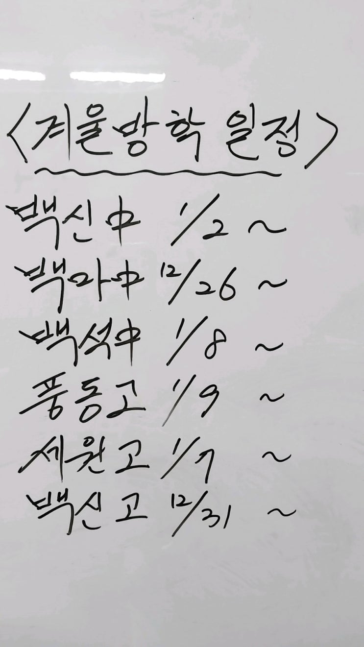 일산 동구 학교별겨울방학 시작 예정일