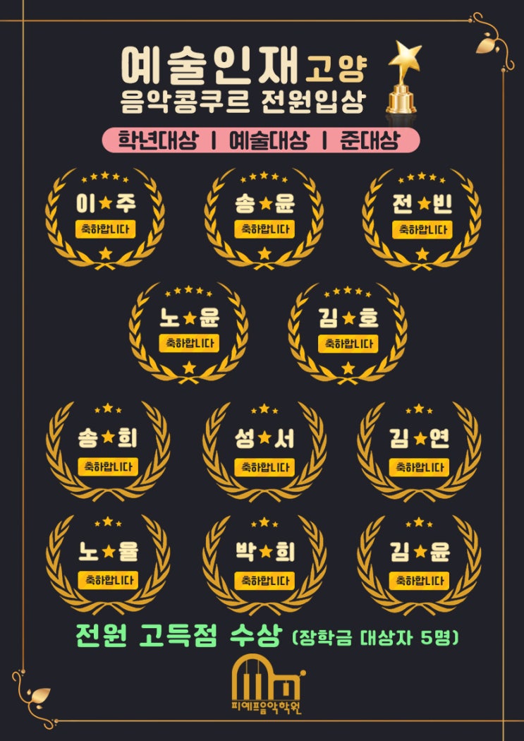 "축"26학년도 고양예술고 음악과 편입학(피아노/작곡)예고입시 역대 SM107,108번째 합격을 축하드립니다!!