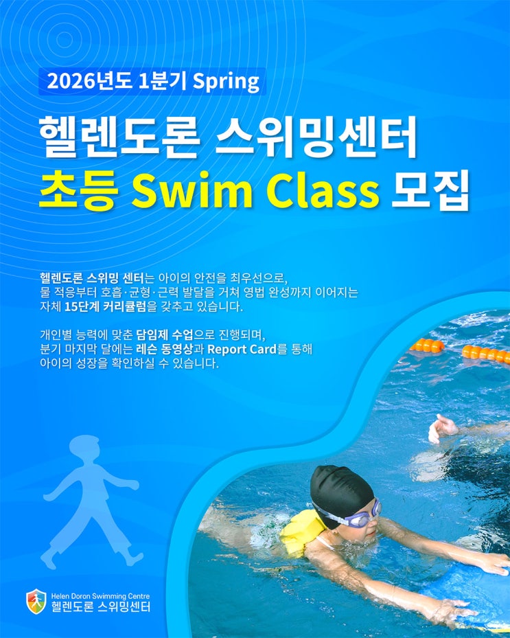 헬렌도론스위밍센터 2026년 1분기 초등 Swim Class 모집안내