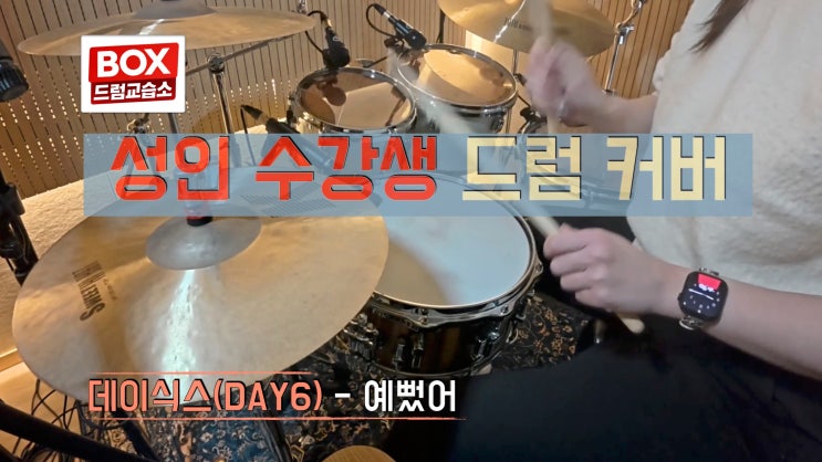 안녕하세요 BOX 드럼교습소입니다. 감성 밴드곡으로 많은 사랑을 받는 DAY6(데이식스) - 예뻤어 이번에는 성인 수강생 드럼녹음 수업으로 드럼커버 영상을 완성했습니다 밴드 사운드가 중요한 곡이라 단순히 박자만 맞추는 연주가 아니라 ✔️ 벌스에서의 섬세한 다이내믹 ✔️ 후렴에서의 에너지 있는 리듬 ✔️ 곡 흐름을 살리는 필인 구성 위주로 수업을 진행하며 녹음을 준비했어요. 처음에는 리듬 어려웠지만 꾸준한 레슨과 반복 연습을 통해 점점 안정적인 타이밍과 자연스러운 연주로 완성도 높은 드럼커버가 되었습니다. 성인 취미로 드럼을 시작하시는 분들, 밴드곡 드럼 연주를 배우고 싶은 분들께 실제 수강생 녹....... <img src="https://blogthumb.pstatic.net/MjAyNjAyMDlfMTQ4/MDAxNzcwNTY0MTc0OTky.JkF2Wopppl-3fwvtCsRHnqTuDYVz-nzxu9svjxKDSdcg.SS6gzxz0Kyfhc_GXqA3TbP1vR-Fe8w78bPk0TPfOYwEg.JPEG/12223.jpg?type=s3" />
