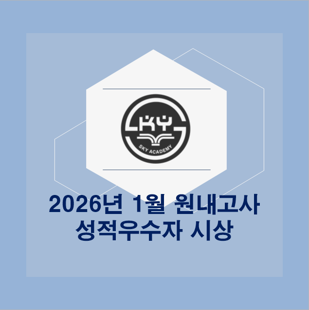 케이투스카이학원 2026년 1월 원내고사 성적우수자 시상 안녕하세요. 케이투스카이학원 블로그를 방문해주셔서 감사합니다. 2026년 1월 원내고사에서 우수한 성적을 거둔 학생들을 축하하는 시상식을 가졌습니다! 이번 시상에서는 총 9명의 학생이 상장과 함께 부상으로 문화상품권을 수여받았습니다. 상을 받은 학생들, 그리고 더 큰 목표를 향해 노력하고 있는 모든 학생들이 앞으로도 꾸준히 성장하며 자신의 잠재력을 마음껏 발휘하길 응원합니다! 추가로 궁금한 점이 있으시면 언제든지 원으로 문의주세요! <img src="https://blogthumb.pstatic.net/MjAyNjAyMTFfMjkx/MDAxNzcwODA5NDA4OTQw.WlSUntV3IroPO6NAROaeX2crxeY6cio8XuGGY5_a-NAg.-frHWsgyzR6QTDIdjgdptSLtIfpCOcGNT3GHw6P6Hvsg.PNG/image.png?type=s3" />