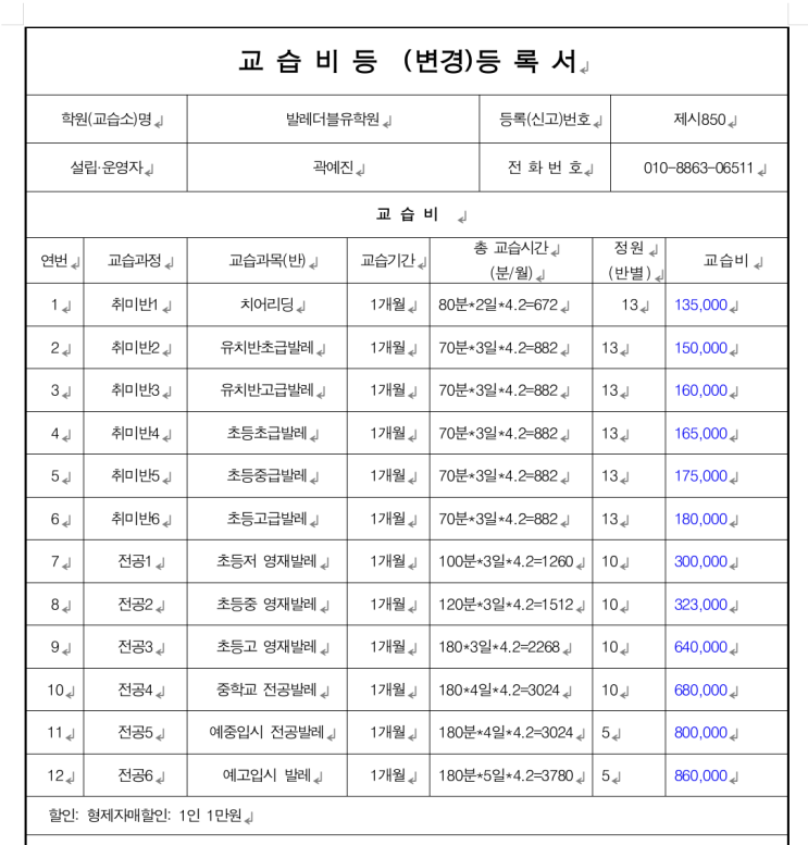 2026년 디디미술학원 가격정보입니다