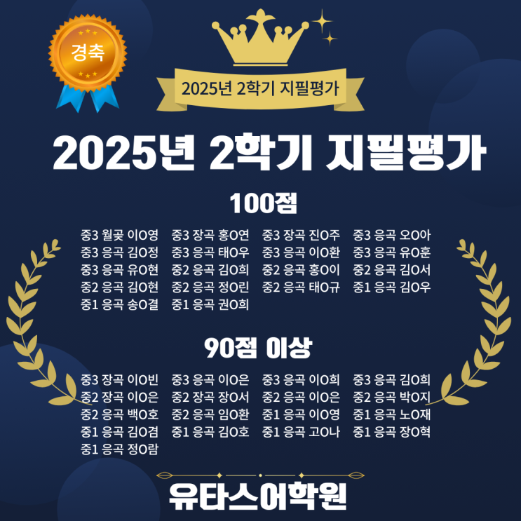 유타스어학원 학생, 선생님 모두 고생하셨습니다. 2학기 지필평가에서도 좋은 결과를 이뤄낸 우리 학생들이 자랑스럽습니다. <img src="https://blogthumb.pstatic.net/MjAyNTEyMjZfMTc2/MDAxNzY2NzM4MTE5ODA1.RHkxf6qE8isFORYWPX448o01ojLf90y1BDWaWVkGxsMg.Q7eTBwQxKXJpc7aixBAhUDwThLD17ALlGiVZrJFscMIg.PNG/%B3%B2%BB%F6_%B9%E8%B0%E6_%B1%DD%BB%F6_%BF%D5%B0%FC_%C0%CF%B7%AF%BD%BA%C6%AE_%BF%AC%B8%BB_%B0%E1%BB%EA_%BC%BC%C0%CF_%C8%AB%BA%B8_%C0%CE%BD%BA%C5%B8%B1%D7%B7%A5_%B0%D4%BD%C3%B9%B0.png?type=s3" />