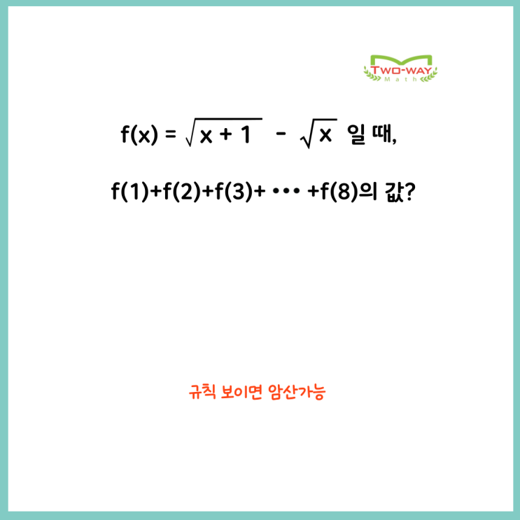 동천동 수학학원|루트함수 합의 구조(소거 합)|투웨이수학학원