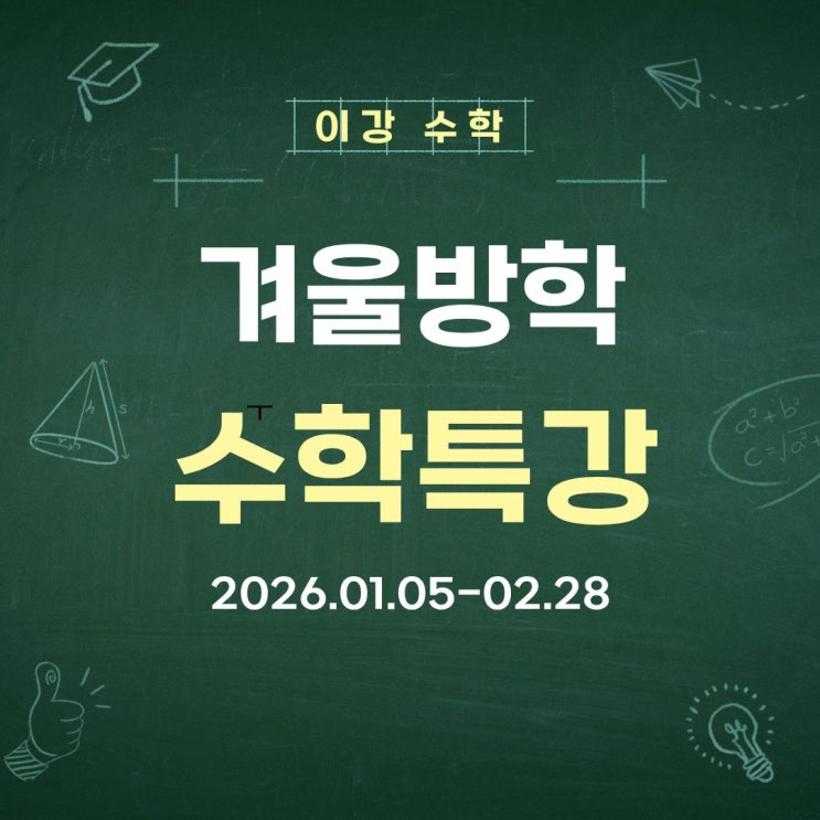 안녕하세요. 수학학원 원장 강원준입니다. 기말고사 기간이 모두 마무리되었습니다. 학생들 모두 정말 수고 많았습니다. 시험이 끝나자마자 겨울방학이 다가오면서 이제 다음 학기를 어떻게 준비해야 할지 학부모님과 학생들 모두 고민이 많으실 시기입니다. 특히 고2 학생들은 이제 본격적으로 수험생의 길에 들어서며 이번 2026년 겨울방학이 매우 중요한 전환점이 됩니다. 겨울방학은 짧지만 학습 격차를 줄이고 개념을 정리하며 다음 학년을 준비할 수 있는 가장 효율적인 시간입니다. 저희 이강수학에서는 학생 개개인의 수준과 학습 상태를 고려해 보다 세밀한 밀착 관리형 겨울방학 특강을 준비했습니다. 방학 기간 동안 개별 보강 수업과....... <img src="https://blogthumb.pstatic.net/MjAyNTEyMjJfNzUg/MDAxNzY2Mzg5NTMwNDI1.N3xey51tgbWuaN0WkDoW8p4wLQNmgxGtjte0O8JPpRQg.a6zT3Kt7l-hvs9bCrQU9DM9XazZex7o8JZvxHSqHtj8g.JPEG/%C1%A6%B8%F1%C0%BB_%C0%D4%B7%C2%C7%D8%C1%D6%BC%BC%BF%E4.jpg?type=s3" />