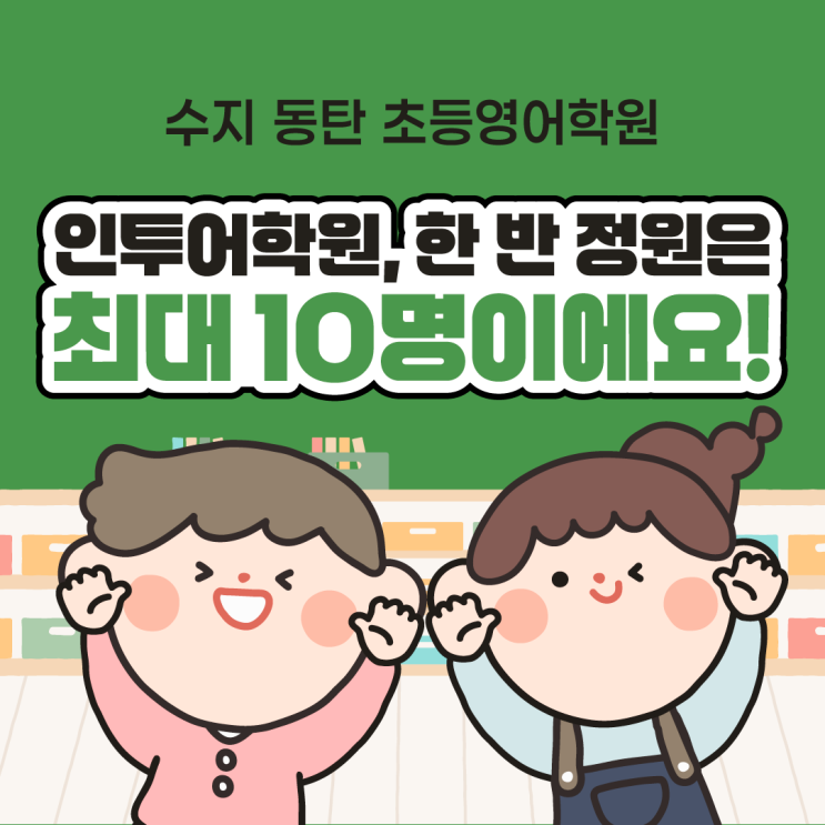 안녕하세요 인투어학원 Sue 원장입니다^^ 초등 자녀의 영어학원을 알아보실 때 학부모님들께서 가장 먼저 확인하시는 것 중 하나! 바로 "한 반에 몇 명이 함께 수업을 듣는가?"인데요. 아이의 영어 발화 기회가 충분한지, 선생님이 아이 한 명 한 명을 세심하게 잘 케어할 수 있는지가 곧 수업의 효과와 직결되기 때문이죠. 그래서 인투어학원 초등부는 한 반의 정원을 최대 10명으로 엄격하게 제한하고 있는데요. 20년 가까이 아이들에게 영어를 가르치면서 지금의 정원이 학습 성과는 물론 관리의 균형까지 가장 안정적이라는 확신이 생겼거든요. 인투어학원 초등부가 왜 한 반 정원을 10명으로 제한하게 되었는지, 지금부터 조금 더....... <img src="https://blogthumb.pstatic.net/MjAyNTEyMThfNjcg/MDAxNzY2MDM4NTQ4ODMz._UkHLPpFLrN-9SJIvfYLInC2BNqXChKhgoVwfUPJdpEg.7F2OMJoYN3wcbNgeOS5f8Btt-WXhpSArhUsxKYxzwcMg.PNG/251217_%C0%CE%C5%F5%BE%EE%C7%D0%BF%F8_%BD%E6%B3%D7%C0%CF_%C3%CA%B5%EE%BA%CE_%C7%D1_%B9%DD_%C1%A4%BF%F8_10%B8%ED.png?type=s3" />