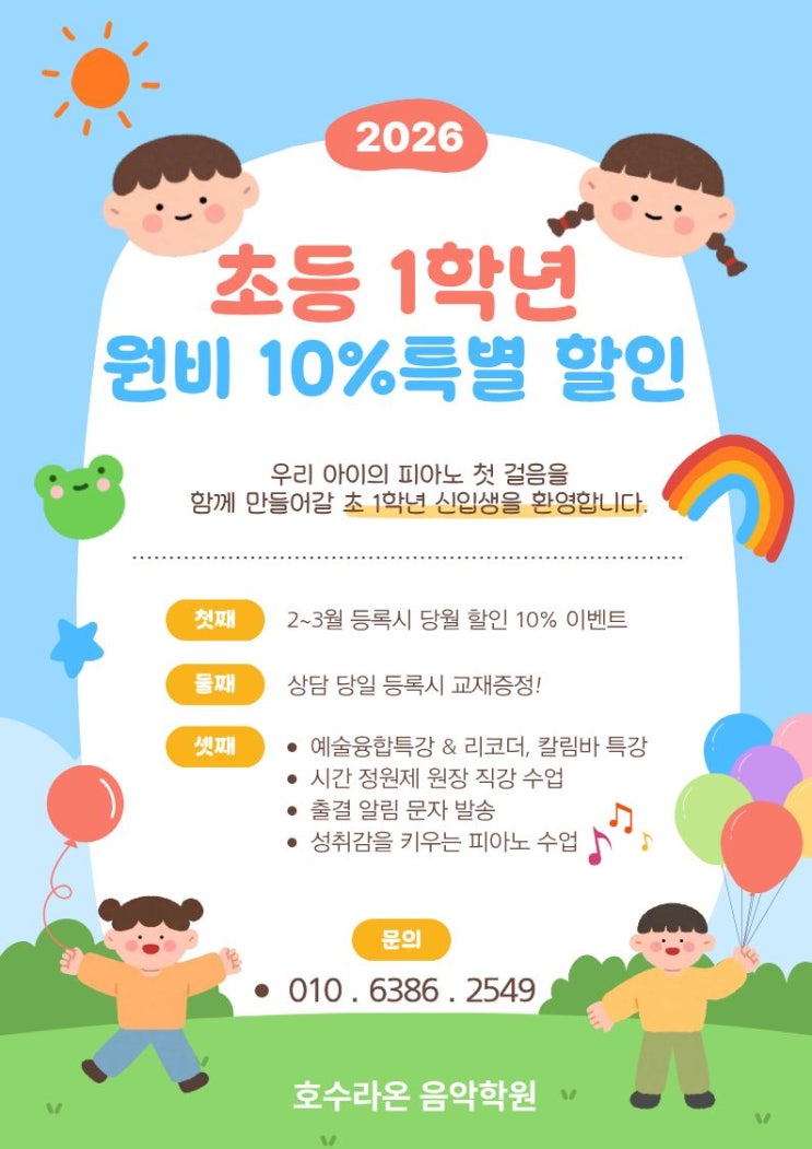 초등 1학년 신입생 안내 처음 시작하는 우리 아이의 피아노, 부담 없이 시작하실 수 있도록 2026년 초등 1학년 등록 시 ✔️원비 10% 할인 혜택 ✔️상담당일 등록시 교재증정 기초부터 차분하게, 아이 눈높이에 맞춰 지도합니다. 궁금한 점은 언제든 편하게 문의 주세요. 010 6386 2549 #정현초 #2동탄 #산척동피아노 #세정중 #청림중 #동탄호수공원 #음악학원 #예비초 #아카데미아 #피아노학원 <img src="https://blogthumb.pstatic.net/MjAyNjAyMDVfMTk0/MDAxNzcwMjYyNjY2NzM2.ZI07pUB5Yqx-am_JgO54FDXIwU-i8RmMGon1R0wl7ecg.pmzwS9onBG-_wKigb8IOtVsUwrckRfBmy4STeQlvuq8g.JPEG/%BD%C5%C0%D4%C0%CC%BA%A5%C6%AE.jpg?type=s3" />