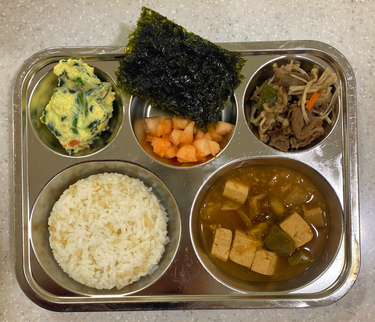 버섯소불고기 시금치프리타타 김구이 깍두기 된장찌개 현미밥 579kcal/33g <img src="https://blogthumb.pstatic.net/MjAyNTEyMThfNjEg/MDAxNzY2MDM0ODI1NzE4.B2A4bPomoA2E-PcKTraZ6rFPNFAlWVQApyXVhJFn_wgg.48xBVrIQ-8-aAOMUGTo6OdTMOsXQQsL4XWp1eHZSeCIg.PNG/image.png?type=s3" />