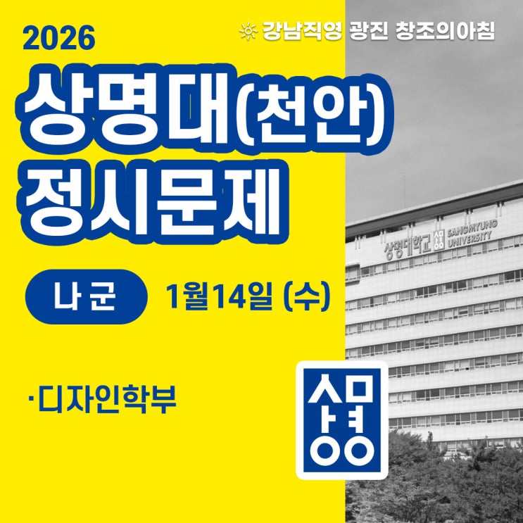2026학년도 상명대학교(천안) 정시 나군 1월 14일(수) 디자인학부 실기 고사 주제 광진 창조의 아침
