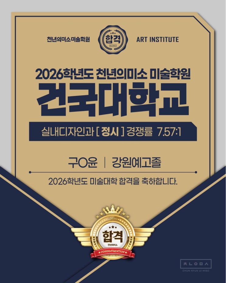 2026학년도 건국대 글로컬 실내디자인과 정시 합격!!! 2026학년도 건국대 글로컬 정시 합격을 축하합니다~^^ 미대에 대한 바른 고민 강릉 천년의 미소 미술학원 <img src="https://blogthumb.pstatic.net/MjAyNjAyMDRfMjMx/MDAxNzcwMjA0NTg3ODE5.AnrK7VxF6_F_yFzafCVLlHz_DXku1eU1OvjxrfVorQQg.eZQPSZ8GsWmXezrI5rVVojP7HPREfaxJuLRr_1JX0eAg.JPEG/%B1%B8%C1%F6%C0%B1_%B0%C7%B1%B9%B4%EB_%B1%DB%B7%CE%C4%C3_%BD%C7%B3%BB%B5%F0%C0%DA%C0%CE-%BF%B5%BB%F3%BF%EB-01.jpg?type=s3" />