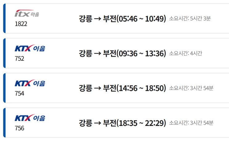 정말 짧지만 강렬했던 부산 여행! 1년에 두 번 모이는 친구들을 만나러 지난 주말 부산에 다녀왔다. 2/7(토) ~ 2/8(일) 부산에 한 친구의 사택에서 신세 지기로 하고 각자 서울에서, 속초에서 모이기로 했다. 나도 강릉에서 KTX 타고 가면 되겠지 생각하고 표를 예매했다. 하루에 4번, 3번 이렇게 열차가 존재했다. 그나마 부산은 부산역이 아니라 부전역이 종착지였다. 내려갈 땐 09시 36분 열차를 탔다. 이 기차를 타기 위해 난 6시 30분에 일어나 삶은 달걀 2알을 먹고 서둘러 준비해서 시외버스 터미널에 갔다. 8시 시외버스를 타기 위하여. 약 1시간 10분 정도 걸린다고 하니 딱 맞춰 강릉 KTX 역에 도착해서 여유 있게 승차할 것이라는 계....... <img src="https://blogthumb.pstatic.net/MjAyNjAyMTFfOCAg/MDAxNzcwODEzNzYxMjM1.bUC7zvwMsl4rzcnd_27ZADIK9oMXe7oEuUMyDCM1IHgg.e3gt6r3_ddFa6MLWpSTYD60NxchNeBnSRJPATaiSJ7gg.PNG/20260211_214101.png?type=s3" />