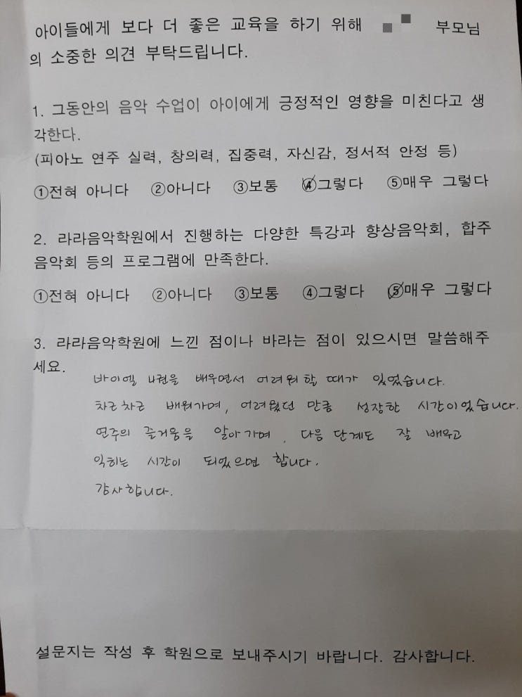 2학년 아이와 부모님 후기