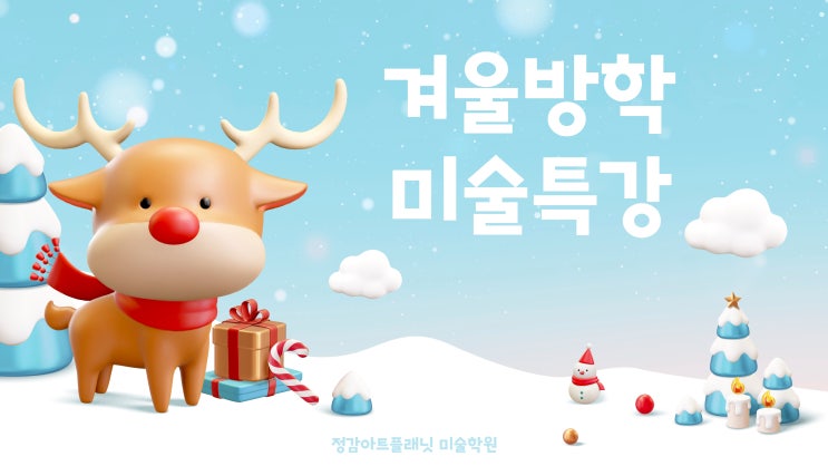 [겨울방학 특강 일정] ❤️특강기간 : 1월 12일 ~ 2월 28일 휴원일 : 2월 16일 ~ 21일 매일미술특강 매일미술특강은 방학에만 진행되는 수업으로, 수채화, 소묘, 디자인, 캐릭터, 일상화, 상상화 등 다양한 미술분야를 배우는 과정입니다. ❤️수강료는 위 이미지를 참고해주세요. :) 중학미술대비 초등 고학년 친구들이 중학교 진학 후 맞이할 미술 수업과 수행평가를 대비하는 수업입니다. 중학교에 진학하면 관찰력과 표현력은 물론, 자기 생각을 작품으로 풀어내는 창의력이 더욱 중요해집니다. 기초 소묘와 채색, 다양한 표현 기법은 물론 주제에 맞는 아이디어 구상법까지 함께 훈련합니다. ❤️수강료는 위 이미지를 참고해주세요. :)....... <img src="https://blogthumb.pstatic.net/MjAyNTEyMTdfMjY5/MDAxNzY1OTQ2OTc5NDA3.0whsUAbEFSojJCyfxNblPt9j9EWHKKnpdwmHlrsGlGMg.ngTzKK61KwncQTrWjDSXoIK9laiI-m_gKN0IW06U-pkg.JPEG/2026%B0%DC%BF%EF%C6%AF%B0%AD0.jpg?type=s3" />