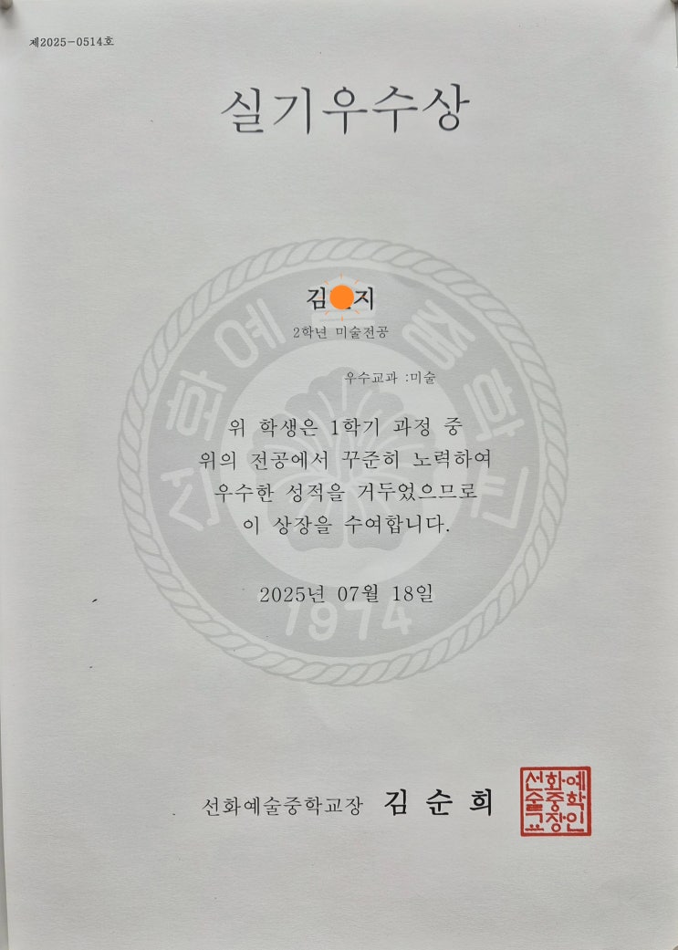 2025년 2학기에도 우리 대치예뜨락 미술학원 학생들이 미술 전공 시험에서 우수한 성적을 내었네요! 김O지 학생의 실기우수상 수상을 축하합니다~~ <img src="https://blogthumb.pstatic.net/MjAyNjA0MDVfODAg/MDAxNzc1Mzc1MDMzMzkw.Le-MvjrUyRbmDkaFIrrPqFRsKx_tgAY3r5Ef5tu_c2Ug.tWcZYy83QP1aodlX8UUbeI6TDJBg7tmwYFGBqIbz7TEg.JPEG/KakaoTalk_20260209_111808353.jpg?type=s3" />
