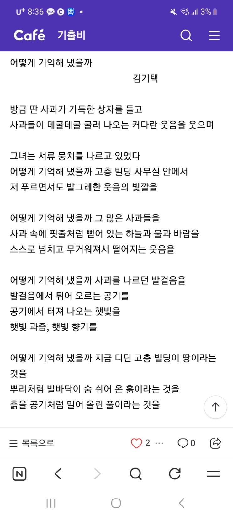 시험에서 가장 어려운 문학 작품이라지만 이 정도 시를 독해할 수 없다면 시 공부를 다시 해야 한다 시의 기본은 비유이다 이 시는 당신의 웃음 속에서 사과를 상상하지만 웃음과 사과가 동일시 되는 비유의 수사를 지니고 있음을 알아야 한다 고층빌딩을 흙으로 전환하는 생태계적 생명력이 이 시의 핵심이다 이 시는 지금은 사라진 미당 문학상 수상 시이다 찬찬히 이 시를 읽고 음미하고 이해해 보자 <img src="https://blogthumb.pstatic.net/MjAyNjA0MDJfNjEg/MDAxNzc1MDg2NzA1NTY1.Crxu1FGmIoh8M24PGfM0mz3XsnUMRnXw0X3oahgx2BUg.I5W_siYpjx-PdOB72M67oyOKxrMQ-dgSLkbAmyKZr4sg.JPEG/900%A3%DFScreenshot%A3%DF20260402%A3%DF083659%A3%DFNAVER.jpg?type=s3" />