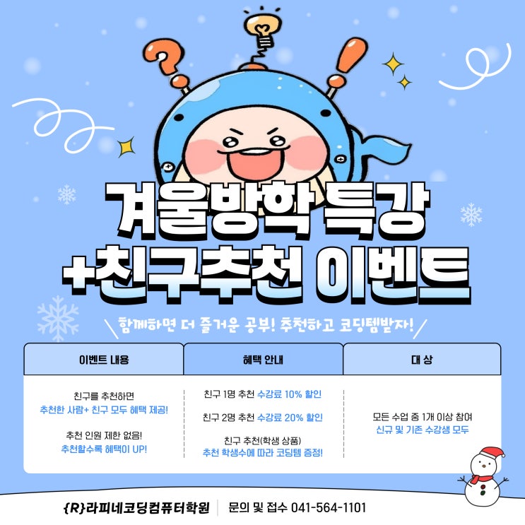[천안 두정 라피네컴퓨터코딩]❄️ 겨울방학 특강 OPEN! 방학때 프로그램 만들래?!