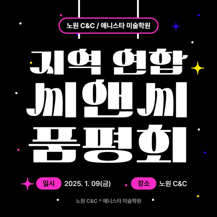 안녕하세요~ 노원 씨앤씨 미술학원 * 애니스타 미술학원입니다 오늘은 노원 씨앤씨 미술학원의 1월 지역 연합시험 평가 현장 및 그림 일부를 공개해드리려고 찾아왔습니다~! 뭐든 공개해버리는 노원 씨앤씨 미술학원 ㅎㅎ 그만큼 자신이 있다는거 아니겠습니까! 오늘도 열심히 보여드리겠습니다 먼저 시작된 애니메이션 지역 연합 품평회 ㅎㅎ 칸만화부터 상황표현까지 다양합니다! 이번에도 노원 그림들이 많이 뽑혔네요 !! 모두 축하드리고 고생 많으셨습니다 노원 고2 A+ 일부 공개입니다 ㅎㅎ 칸만화 상황표현 모두 완성도 있게 그려주었습니다 다음 시험들이 기다려질정도로 훌륭하게 잘그렸네요 !! 그리고 진행된 디자인 지역....... <img src="https://blogthumb.pstatic.net/MjAyNjAxMTlfMzgg/MDAxNzY4ODI0NDI2MDgy.fGgDPIt3dP68pYKyTGPHKSiwg-Q5KK07dCvEmT7RXEYg.jlOhmUwQvlM0g819YuCwj6n9Gz__nnPbUMQYE3tJ3-sg.JPEG/%C1%A6%B8%F1%C0%BB_%C0%D4%B7%C2%C7%D8%C1%D6%BC%BC%BF%E4__%BA%B9%BB%E7%BA%BB-001_%281%29.jpg?type=s3" />