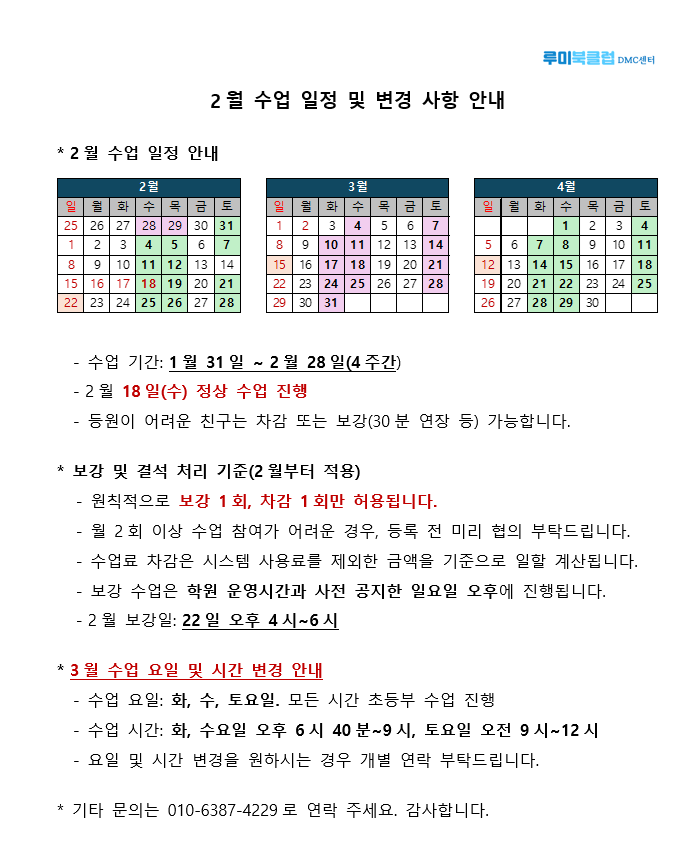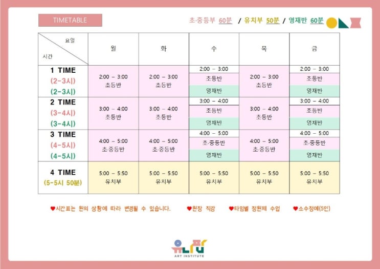 [구파발역 진관동 미술학원] 유니팝 은평상림마을센터 - 시간표