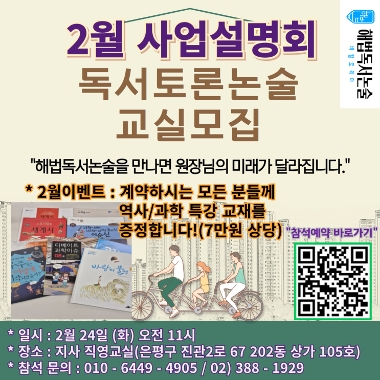 [공지] 해법독서논술 서울서부지사 2월24일 사업 설명회 서대문,은평,종로,마포,용산,중구