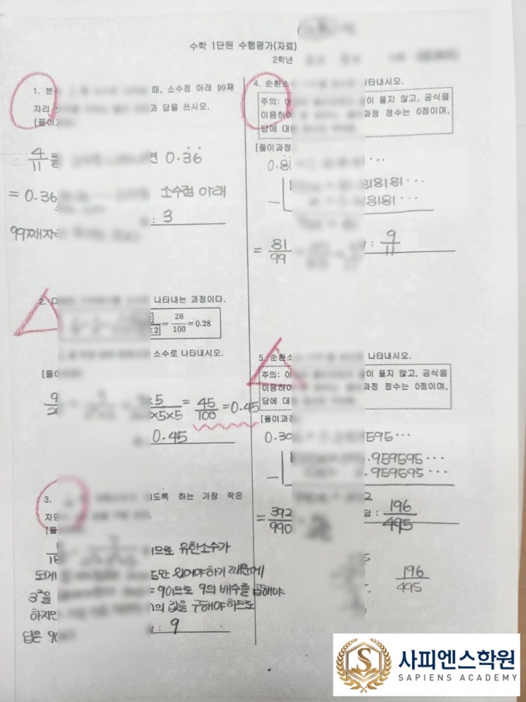 [강현중 수학학원] 수행평가까지 확인하는 사피엔스 수학학원