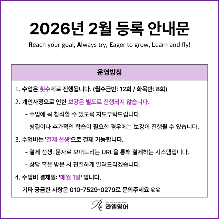 [DMC, 가재울 영어교습소] 라엘영어교습소 2월 등록 안내문