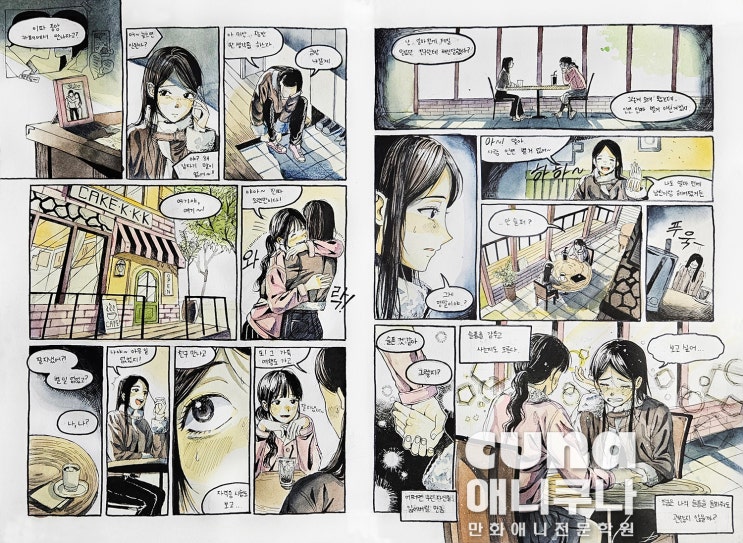 안녕하세요 여러분! 홍대 애니쿠나 만화학원입니다~ 오늘은 칸만화 앵글에 관해 한번 이야기를 해볼건데요! 여기서 앵글이란? 영화, 사진, 회화에서도 흔히 쓰이는 용어로 만화에서는 칸이나 장면속에 대상을 표현할 때 바라보는 각도를 말한답니다! 칸만화를 하는 친구들이 가장 까다로워하는 장면 중 하나가 무엇일까요? 바로 두 사람이 한 장소에 앉아서(혹은 서서) 가만히 대화하는 장면인데요! 의외죠? 정적으로 이야기만 나누다 보니, 컷 구성이 옆모습 > 앞모습의 반복이거나 A비추기, B비추기로 무한 반복되기 쉽기 때문이에요! 오늘은 이런 대화 씬을 지루하지 않게 연출하는 법에 대해 이야기해보려고 합니다! 예시작과 함께 설명해....... <img src="https://blogthumb.pstatic.net/MjAyNTEyMjBfMzAg/MDAxNzY2MjI1NDk0NDI3.Kwm3y5K18tBgEY8oYznVq71ePvGoKz1pvZhvNDToutsg.KYxAspXFU1wZzwTaAGoG-kDImOJw0BBbfz7vONt5pEsg.JPEG/%C0%CF%B7%AF%BD%BA%C6%AE22.jpg?type=s3" />