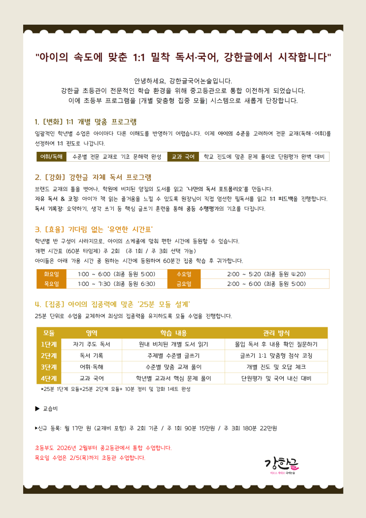 강한글 초등 통합 이전 안내+시간표+프로그램