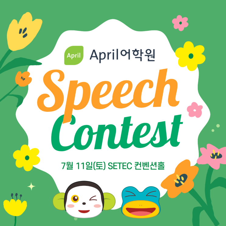 안녕하세요, 노원중계 April 어학원입니다. 오는 7월 11일, 2026 April Speech Contest가 개최될 예정입니다. 대회 참여를 통해 발표/표현력 향상, 영어학습 동기부여를 위해 진행되는 행사인 만큼 재원생 여러분들의 많은 관심과 참여 바랍니다. 현재 대회 일정은 내부 조율 중으로, 확정되는 대로 본 게시글을 통해 자세히 안내드릴 예정입니다. 아이들이 그동안 쌓아온 실력을 마음껏 펼칠 수 있는 의미 있는 시간이 될 수 있도록 준비하겠습니다. 추후 공지되는 일정과 세부 내용을 꼭 확인 부탁드립니다. 감사합니다. ✨문의전화: 02-939-4105✨ <img src="https://blogthumb.pstatic.net/MjAyNjA0MDNfMSAg/MDAxNzc1MTg3MjQ2Mzk3.DzixLkUutSEKVTeSS7itXKLBjAWHJhinNmWY8HG935Yg.WtygOUgkOB-GOwwxIPxhqpDAlrDTamoLkOf6MQZlx70g.PNG/%BD%BA%C7%C7%C4%A1.png?type=s3" />