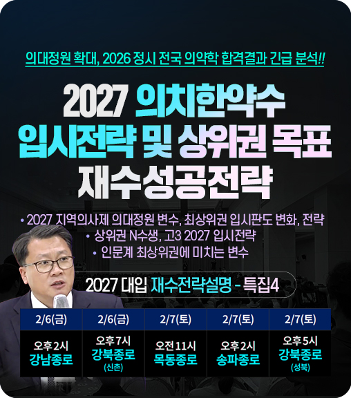[종로학원] 2027 의치한약수 입시전략 및 상위권 목표 재수성공전략 설명회 개최