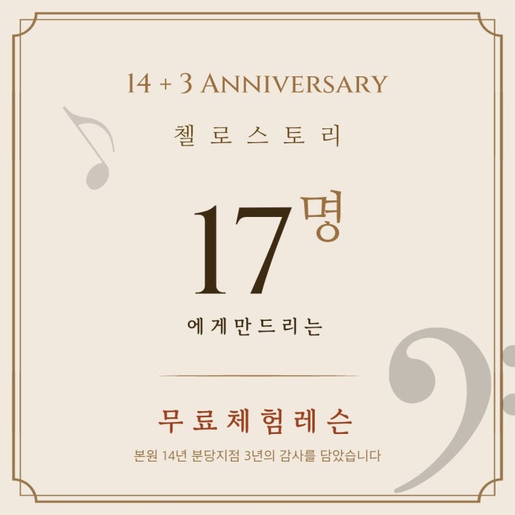 첼로스토리 개원 14+3주년 기념 특별 이벤트! 선착순 마감